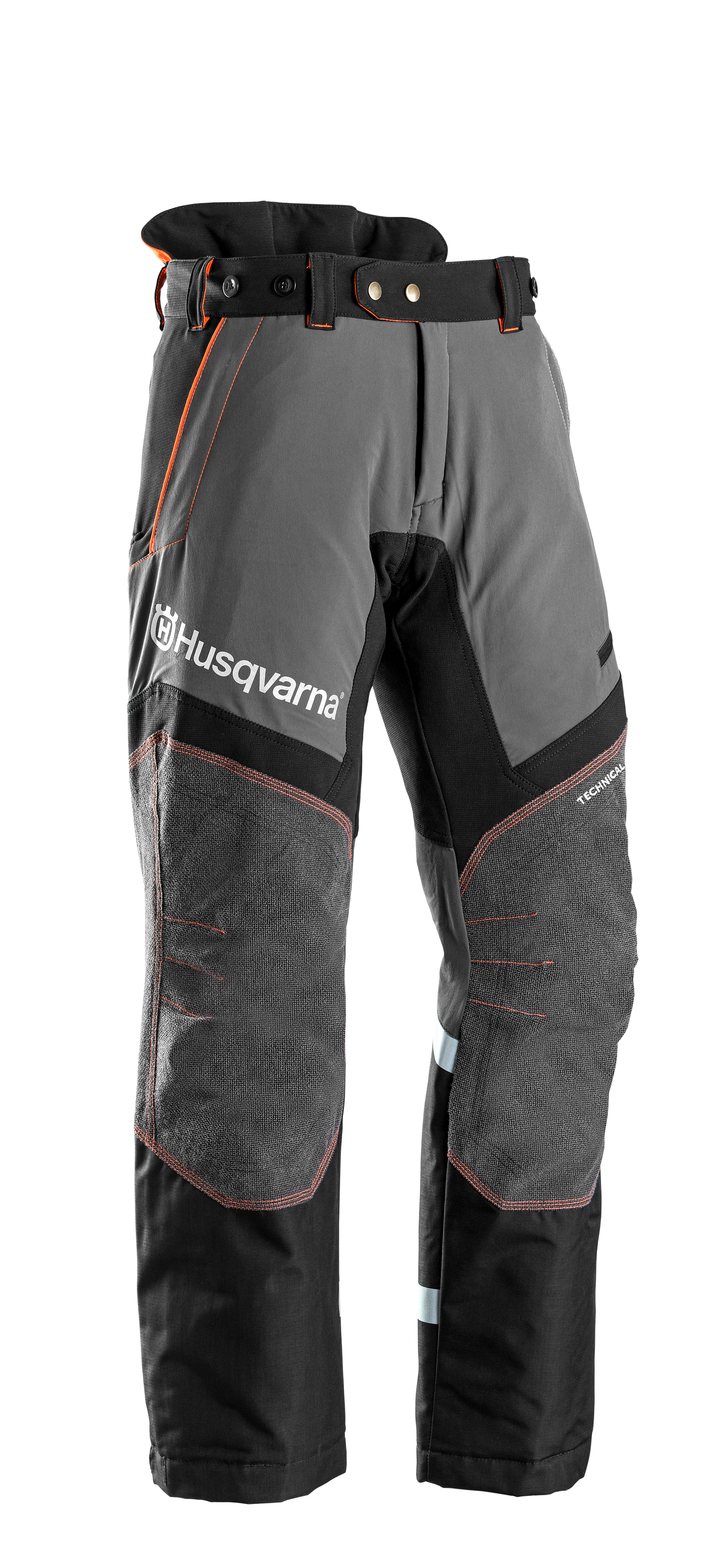 Husqvarna kaitsepüksid Technical C on erinevalt enamustest turvapükstest kogu jalasäärt ümbritseva (ka sääre tagumine pool) saekaitsega. Lai kummiga vööosa ja pikendatud tagaosa. Uudne disain – keha kuju järgiv 4-suunalisest strets materjalist parema mugavuse ja ergonoomia tagamiseks. Kriitilisemad kohad on tugevdatud Aramiid ja Cordura® materjaliga. Kõrgnähtavusega oranzi värvi, suur helenduv logo ja helkurriba seljal. Kaks esi- ja tagataskut, üks tasku vasakul säärel ja tööriistatasku. eelpainutatud põlveosa parema mugavuse ja liikuvuse tagamiseks.