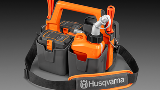 Praktiline tööriistakast Husqvarna Bli-X 36 V akude, tööriistade ja ketiõli jaoks.